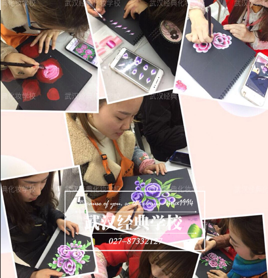 给人以无限遐想和美的享受!喜欢的小伙伴们赶紧收藏起来吧,武汉经典化妆培训学校美甲班排比彩绘火热学习中,如果你想成为一名优秀的美甲师排比彩绘是必修课程哦,赶紧来武汉经典化妆培训学校学习吧!