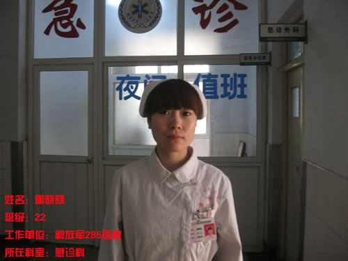 | 41班安金 解放军285医院消化科 | 21班安宁 解放军285医院神经外科 | 22班霍晓晓 解放军285医院急诊 |