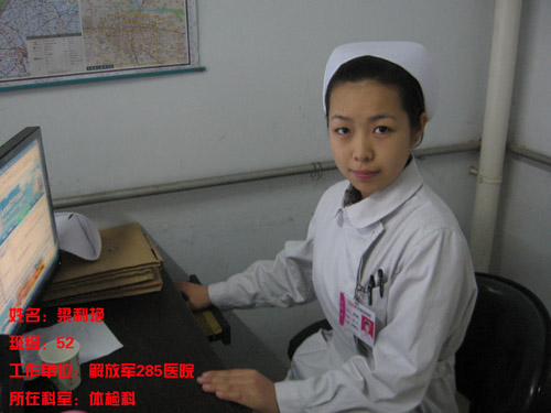 | 52班梁利艳 解放军285医院体检科 | 26班任雪 解放军285医院心内科 | 37班姚亚丽 解放军285医院心内科 |