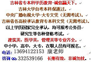 毕业待遇: 由吉林省自考委和主考院校联合颁发教育部电子注册的本科毕业证书,国家承认学历,可在教育部学历证书查询网站——中国高等教育学生信息网(www.chsi.com.cn)查询,供用人单位查询。符合主考院校规定学位条件者可授予学士学位。可用于报考研究生、公务员等相关考试。