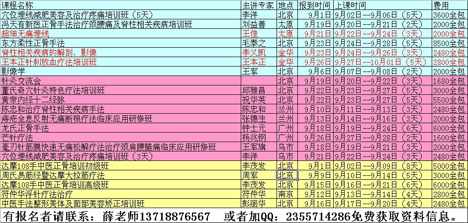 9月北京举办中医手法软组织矫正及美容塑身研修班