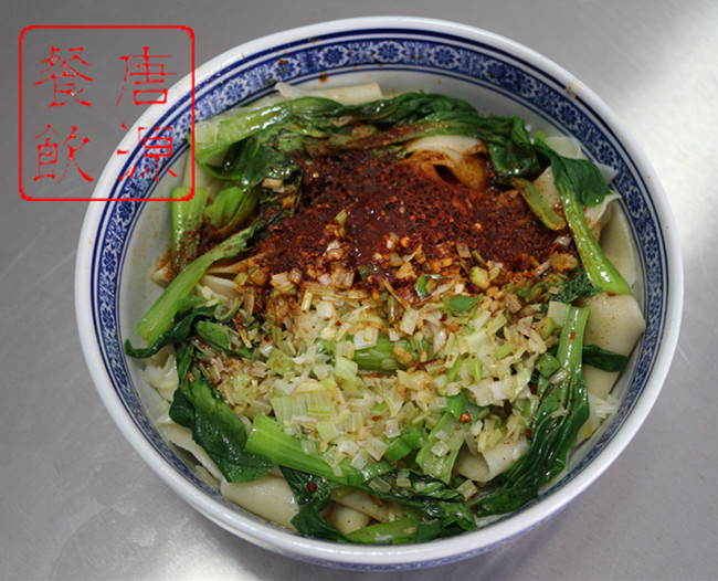 油泼面,汉族传统风味面食,陕西很有特色的一种主食。油泼面又叫扯面、拽面、抻面、桢条面、香棍面等。油泼面是一种很普通的面食制作方法,将手工制作的面条在开水中煮熟后捞在碗里,将葱花碎、花椒粉、盐等配料和厚厚一层的辣椒面一起平铺在面上,用烧的滚烫的菜油浇在调料上,顿时热油沸腾,将花椒面、辣椒面烫熟而满碗红光,随后调入适量酱油、香醋即可。也可另外加入腊汁肉、西红柿鸡蛋等搭配食用。