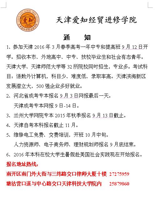 以上为目前招生专业,具体政策及报考专业以当年报考时公布的信息为准,最终解释权归天津爱知经贸进修学院