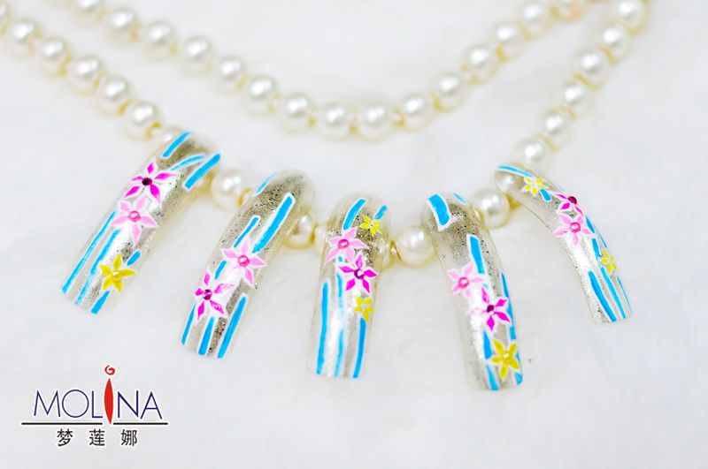 主要学习内容有:美甲的历史来源及行业发展、指甲的构成、各种甲片的粘贴技巧、手足基础护理与深层护理、平面彩绘、3D彩绘、水晶指甲、树脂光疗甲操作与常见问题解决、光疗装饰、水晶雕花等,还有光疗彩绘、单色琉璃甲、创意琉璃甲、甲油勾绘、大理石勾绘、卡通彩绘、最新情意蕾丝彩绘、艺术展示连体画、立体雕花、水晶饰品创作以及开店指导、店务日常管理。