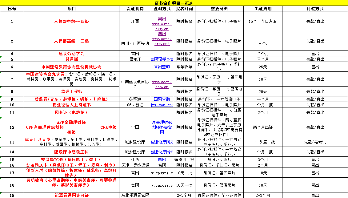 各种证书类项目(一手)