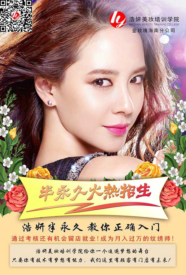 海口龙华浩妍美妆培训学院纹绣美甲免费招生