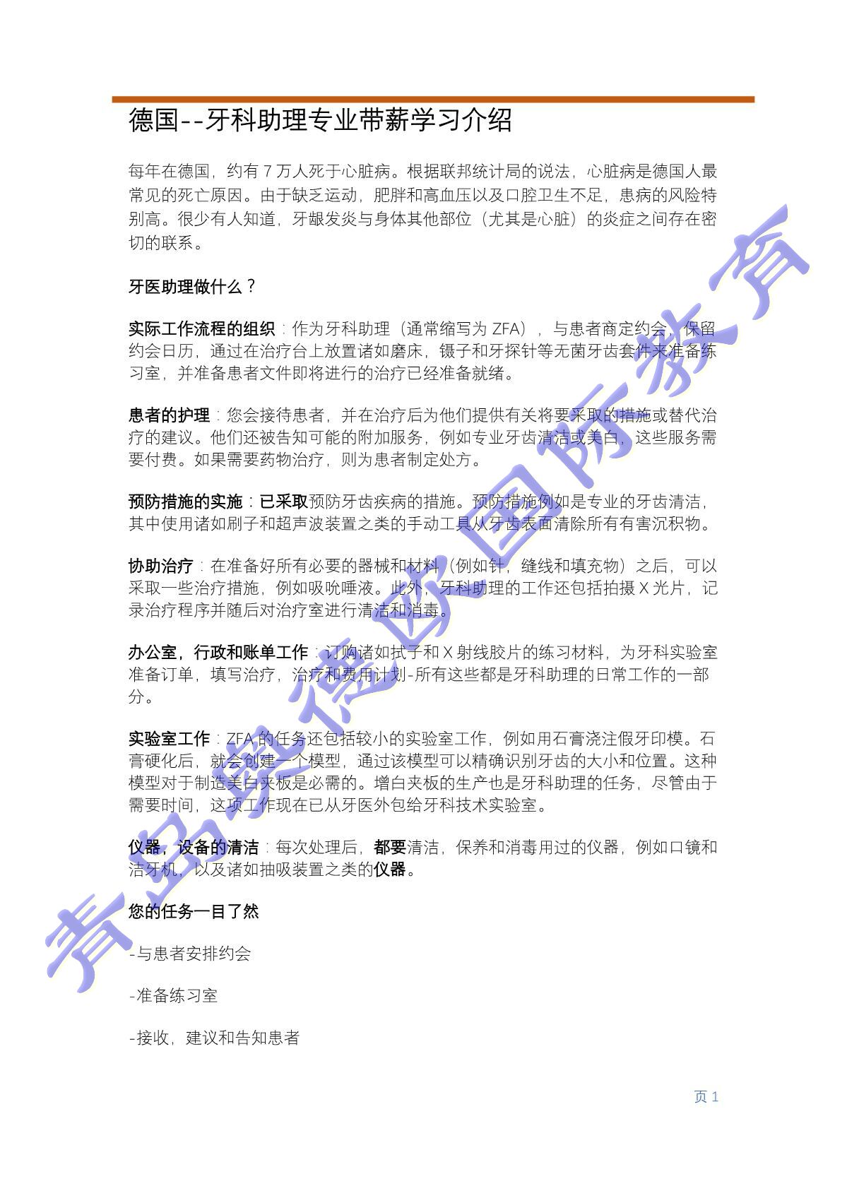 德国牙医助理带薪职业 项目合作