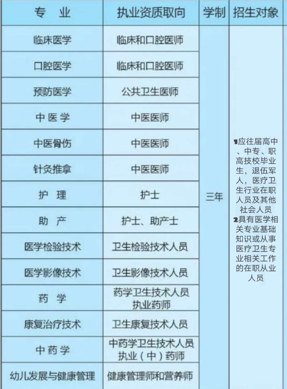 招生专业:口腔医学,临床医学,中医学,护理学, 针灸推拿学