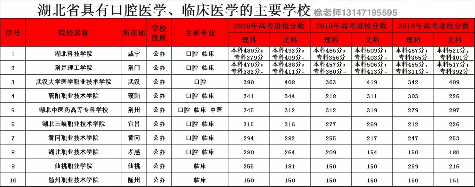 2020湖北普通高考:150分录取临床医学,282分录取口腔医学,湖北省的医学学校多,计划多,分数线最低!最低207分录取外省口腔医学大专