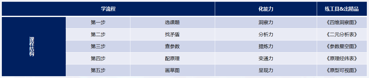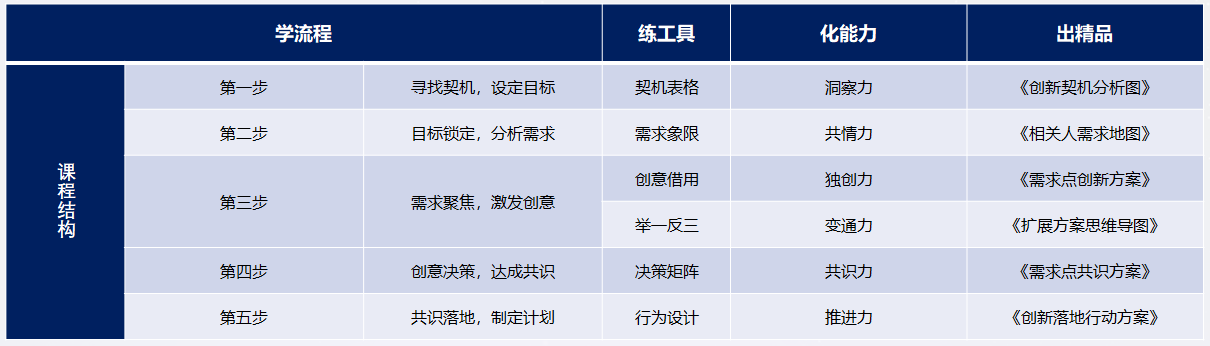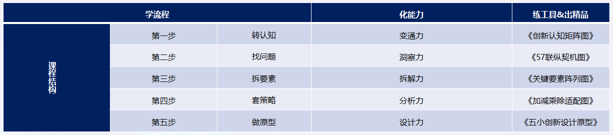 《企业创新能力系统性提升项目》主要立足于企业核心业务模块,从生产管理、项目研发、产品设计、服务能力及五小创新五个方面,构建创新项目产品矩阵,并构建具体创新流程标准,匹配创新的具体工具方法,同时,立足于实际问题解决,培养具备创新能力的高素质人才。