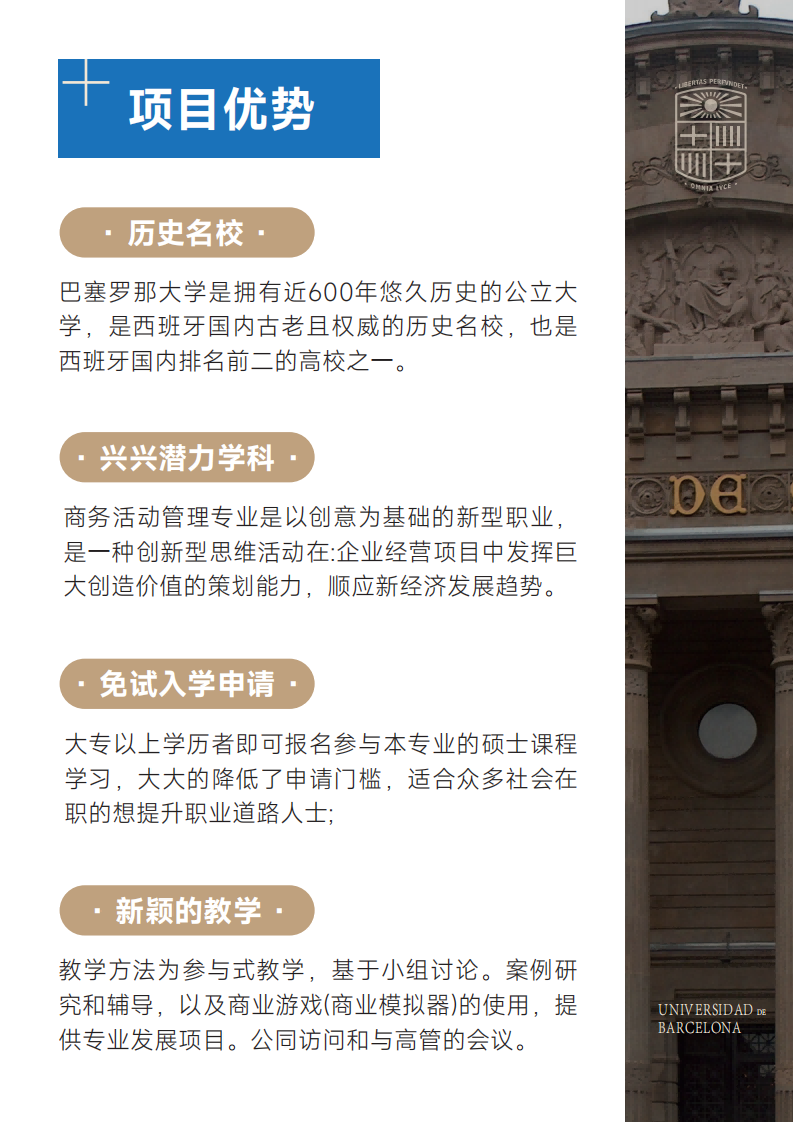 西班牙巴塞罗那大学商务管理硕士项目全国诚招区域渠道代理