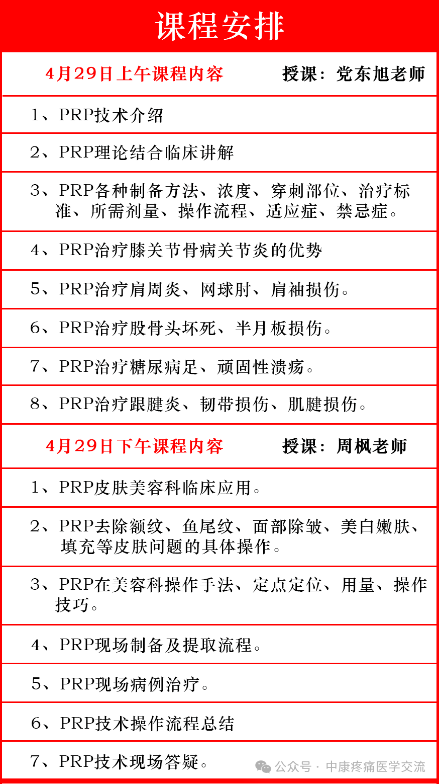 (PRP技术.广州班)2024年4月PRP技术骨病疼痛及美容临床应用研修班