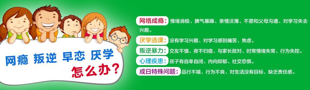 有网瘾、早恋、叛逆、自闭、厌学及离家出走等思想行为的问题青少年。学校以强烈的社会责任感、科学的教育教学方法和诲人不倦的大爱精神,针对来自全国31个省、市、自治区有上网成瘾、早恋、叛逆、自卑自恋、挥霍无度、厌学逃课、离家出走、人格异常、打架斗殴、暴力倾向、亲情冷漠等不良思想行为习惯的青少年,进行心理辅导、行为矫正、思想教育、感恩教育和文化补习等,在家长的密切配合下,帮助这些青少年走出困惑,把孩子们培养成健康人格,对社会有用的人。