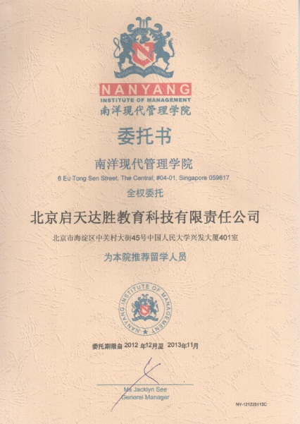 新加坡南洋现代管理学院委托书