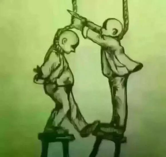 你帮人家剪绳子,人家却在踢你脚下的凳子。