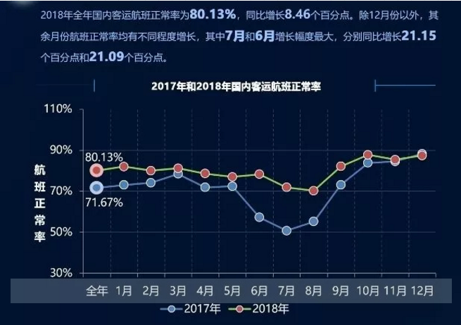 “国内客运航空公司航班正常率力争保持80%,全国主要机场放行正常率和始发航班正常率力争达到85%。”持续完善航班正常工作,是2019年全国民航工作会议提出的工作重点之一。