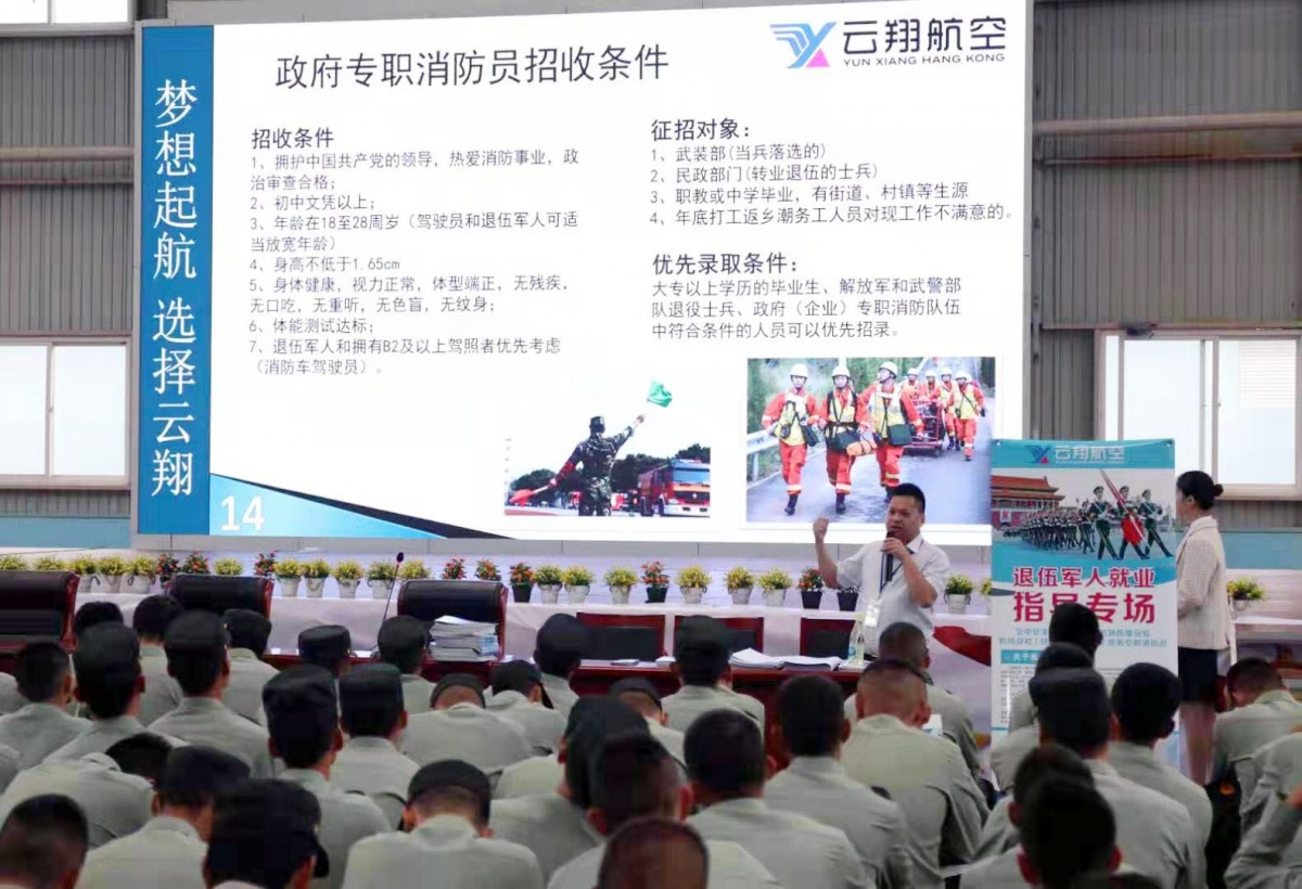 云翔航空,创立至今五年来,已经协助大批退伍军人成功地找准了可以继续发挥军人价值的工作:航空方向的重要岗位。此次宣讲服务的退役军人分别来自陆军侦察部队、海军陆战队、武警部队、消防部队、空军地勤部队,广泛就职于深圳航空、东海航空、东方航空、华夏航空、祥鹏航空,以及全国各个民航主要机场地面服务岗位。