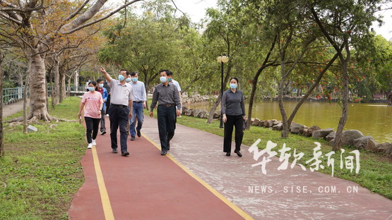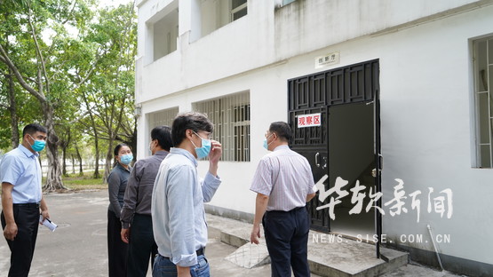 在学院领导陪同下,广州大学检查组一行察看了学院疫情防控相关资料,实地察看了校园卫生环境、传染病预诊分室、隔离留观室、健康观察区(隔离室)以及其它主要公共场所。