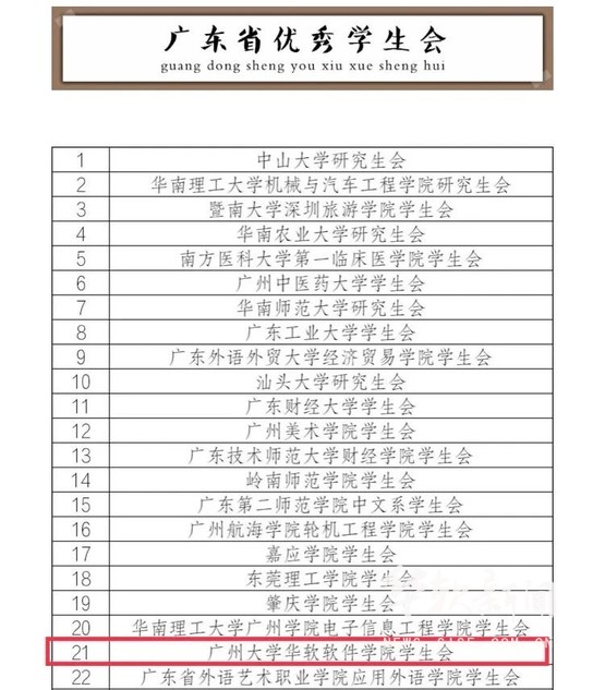 广州大学华软软件学院学生会荣获“广东省优秀学生会”