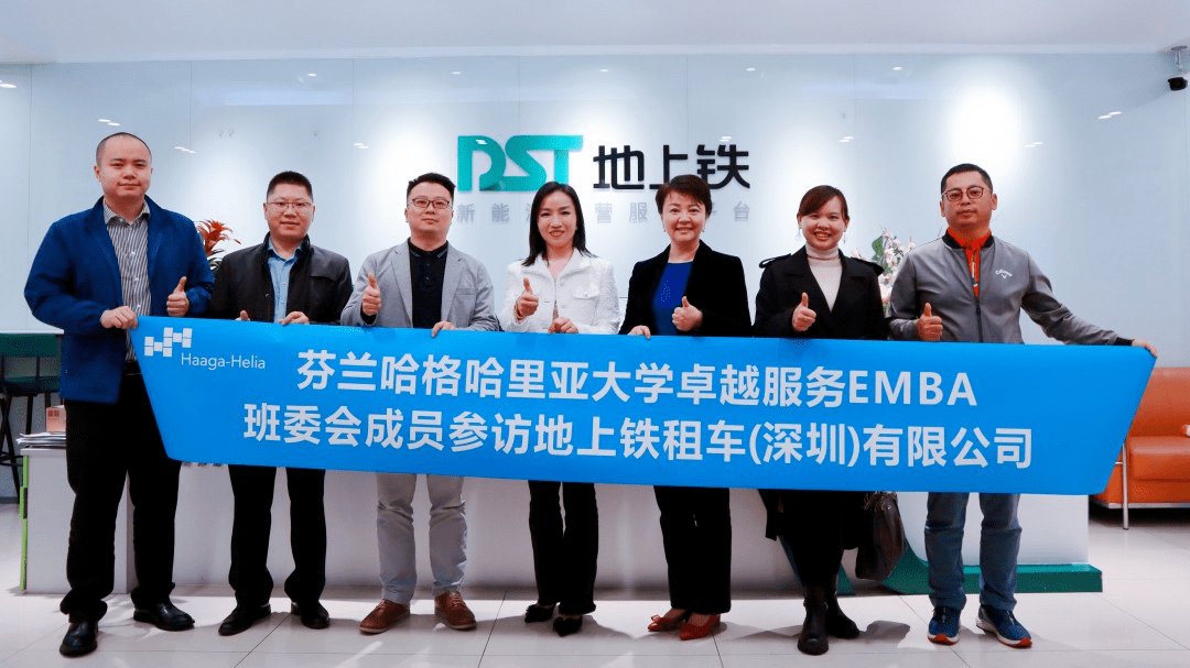 12月1日,芬兰哈格哈里亚大学EMBA学位班全体班委受张海莹同学的邀请,走进地上铁租车(深圳)有限公司,开展卓越服务与管理领域的企业参访并成功召开了2022级EMBA班首次班委会议。