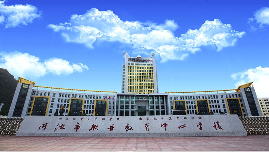 河池市职业教育中心学校是2008年8月由河池市委市政府整合河池机电工程学校、河池财经学校、河池民族中专和河池经贸学校等4所学校组建成立的一所公办中职学校。学校一年完成实质性整合,两年实现“三级跳”,成为自治区重点、自治区示范和国家重点中职学校,三年实现“四级跳”,成为立项建设国家改革发展示范学校。2015年经教育部验收正式成为国家示范学校,2018年学校以全区第4名成绩被认定为自治区“五星级”中职学校,创造了民族地区职业学校跨越发展的奇迹。学校先后成为自治区卫生优秀学校、教育部首批信息化试点单位、全国中职学校德育活动课示范学校、全国国防教育特色学校。先后评为自治区先进基层党组织、全区职教攻坚先进单位、全区扶贫培训先进单位、自治区文明单位。学校占地面积500亩,建筑面积16万多平方米,在校生近8000人。现有教职工368人,高级职称教师94人,其中正高级职称8人。学校设有5个教学部,开设26个专业,其中自治区示范专业5个,自治区示范实训基地5个,教学设备价值达1.3亿元,办学实力全区前列。几年来,学校在教研、德育、教学、信息化、社会服务等方面成效突出。教师承担自治区级课题从3项增加到70项,编写出版教材42本、专著4本,发表论文616篇,获自治区级以上教学成果奖14项,其中,国家级二等奖1项、自治区级特等奖1项、一等奖3项,教师教研能力和水平全区前列。教师参加全区全国各类比赛获全国一等奖5项、二等奖33项,全区一等奖70项、二等奖95项。学生参加文明风采大赛获全国一等奖36项、二等奖58项,全区一等奖249项、二等奖370项;参加全区职业技能大赛获全区一等奖61项、二等奖125项,学校成为全区教学质量提升最快中职学校。2019年,我校学生到俄罗斯参加第三届金砖国家技能大赛,取得了银牌的优异成绩!学校坚持开放办学,不断改革创新,凝心聚力,以“立足河池,唱红广西,名扬全国,走向世界”为目标,实施“1234567”发展战略,为河池职业教育发展创造新的辉煌,为经济社会发展作出更大贡献。