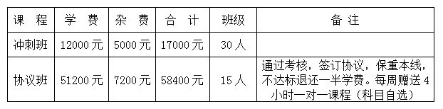 3、费用说明:杂费包含教材、讲义、测验、月考、模拟考等。如下表