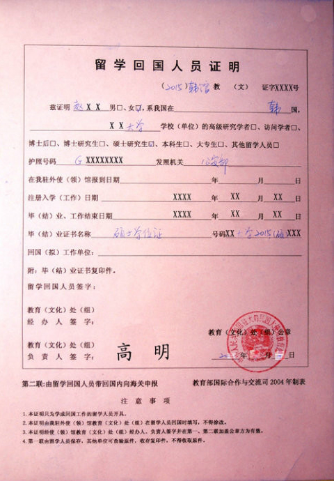图三:留学回国人员证明 图四:教育部留学服务中心--国外学历学位认证书
