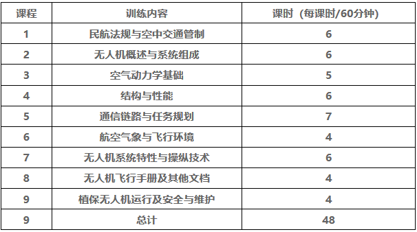AOPA根据农业植保飞行的特点为农业植保专门设立了V类驾驶证,以满足农业植保需求为目的,在理论和实操考试内容和范围方面做了针对性的安排。AOPA农业植保的的课程内容和课时安排如下:
