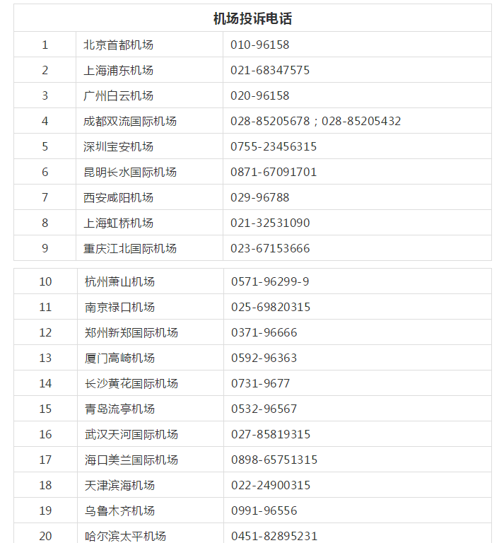 12326 | 民航投诉电话以及其他航空机场投诉电话